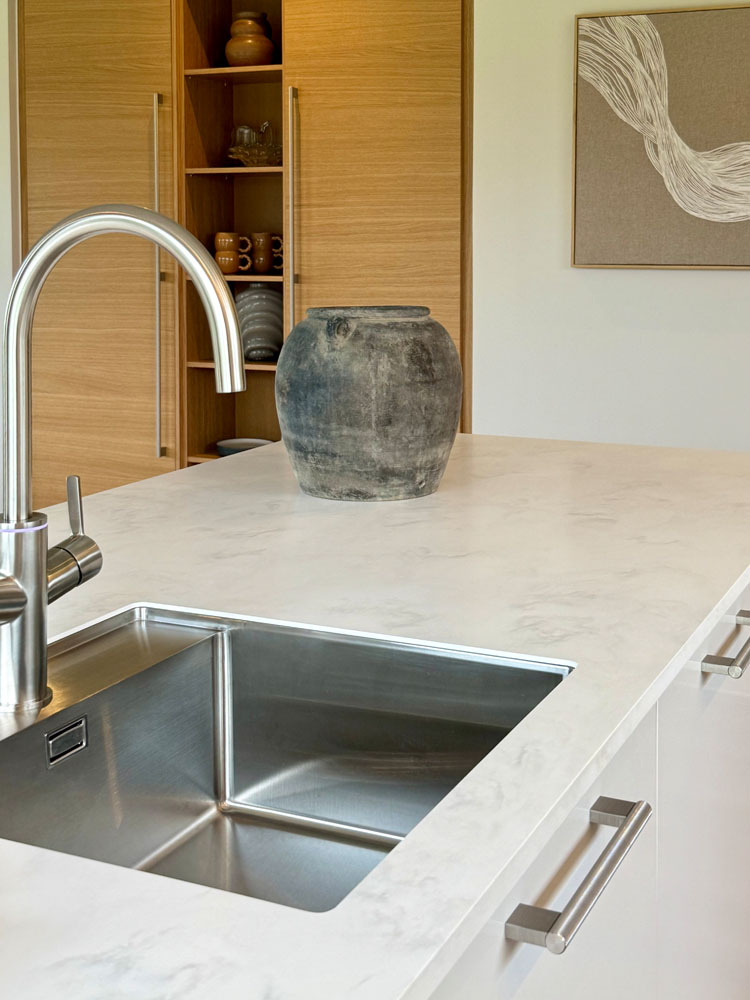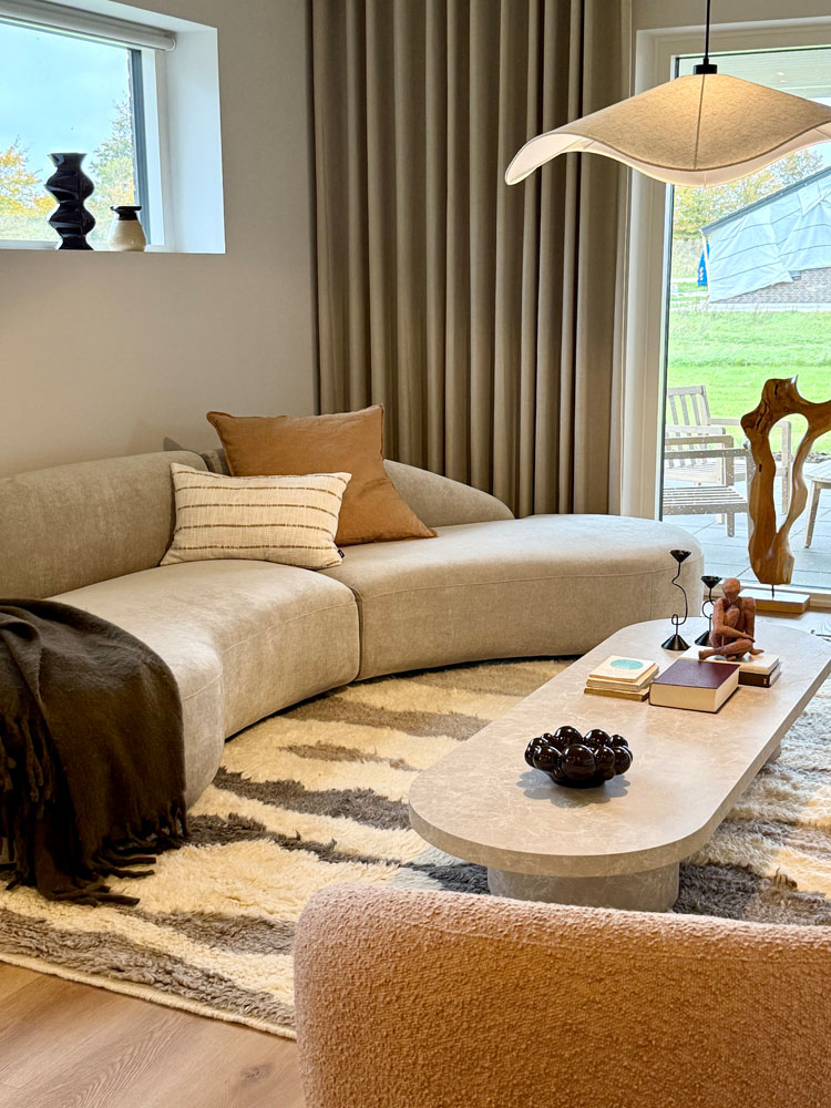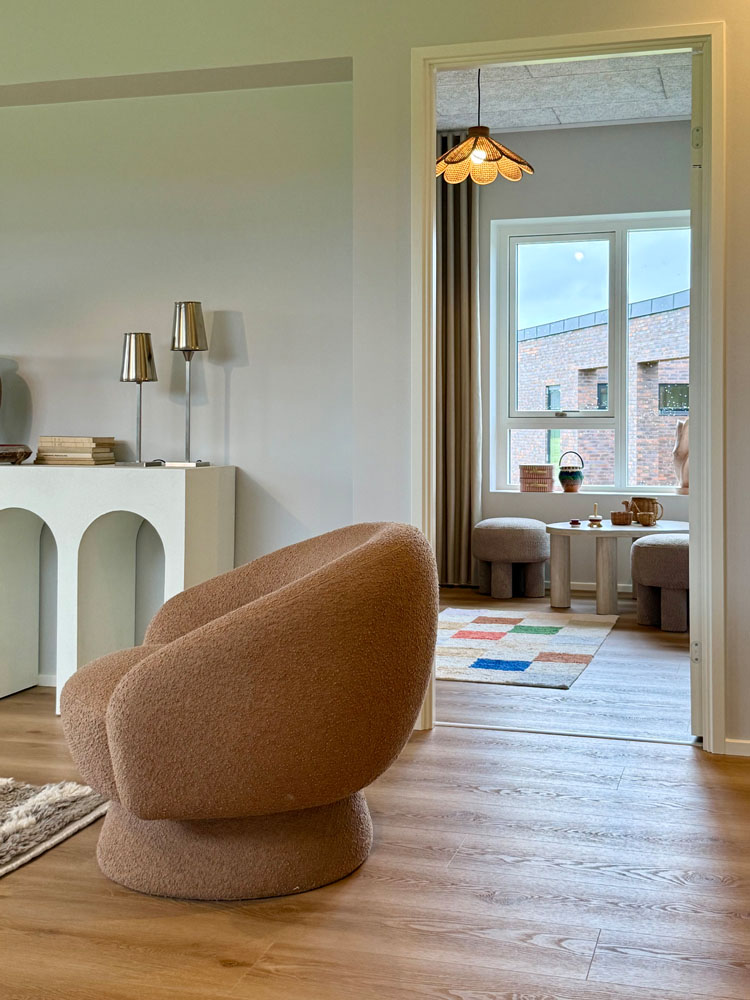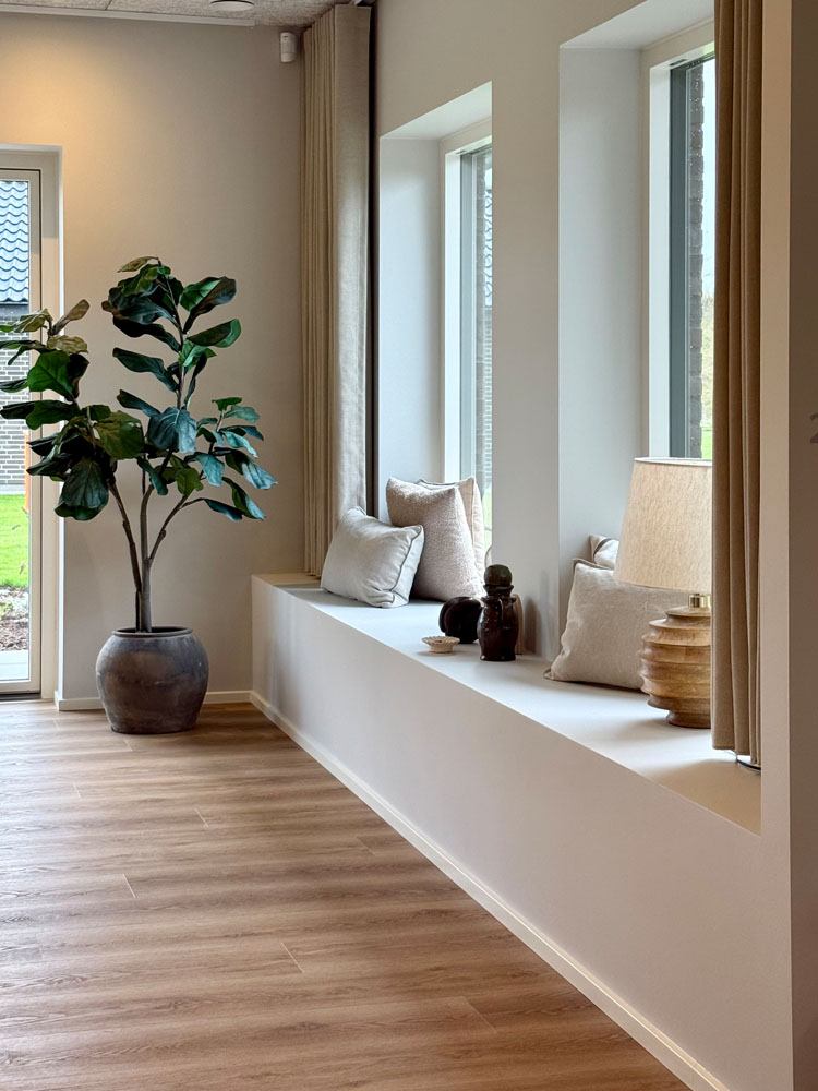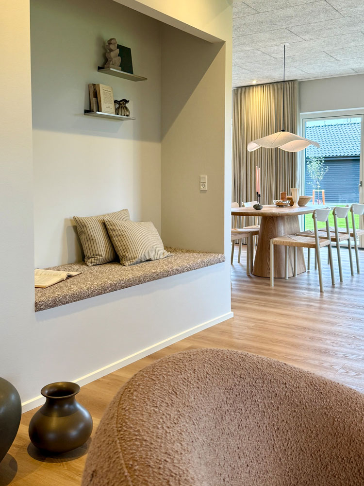 Overalt i huset er der valgt lækre materialer, med fokus på den hyggelige og stemningsfyldte atmosfære samt godt lysindfald med store vinduespartier. Af øvrige lækre detal-jer kan nævnes troldtekt lofter som understøtter den gode rumfornemmelse samt sikrer god boligakustik. Det store køkken/alrum får masser af lys fra flere sider. Desuden kan nævnes lækre gulvklinker, brusenicher med store sæbehyl-der, alkove, Unito armatur og meget mere. Her er virkelig kræset for detaljerne og der har været fokus på at fremkalde hygge stemning, rummelighed og minimal vedligeholdelse.